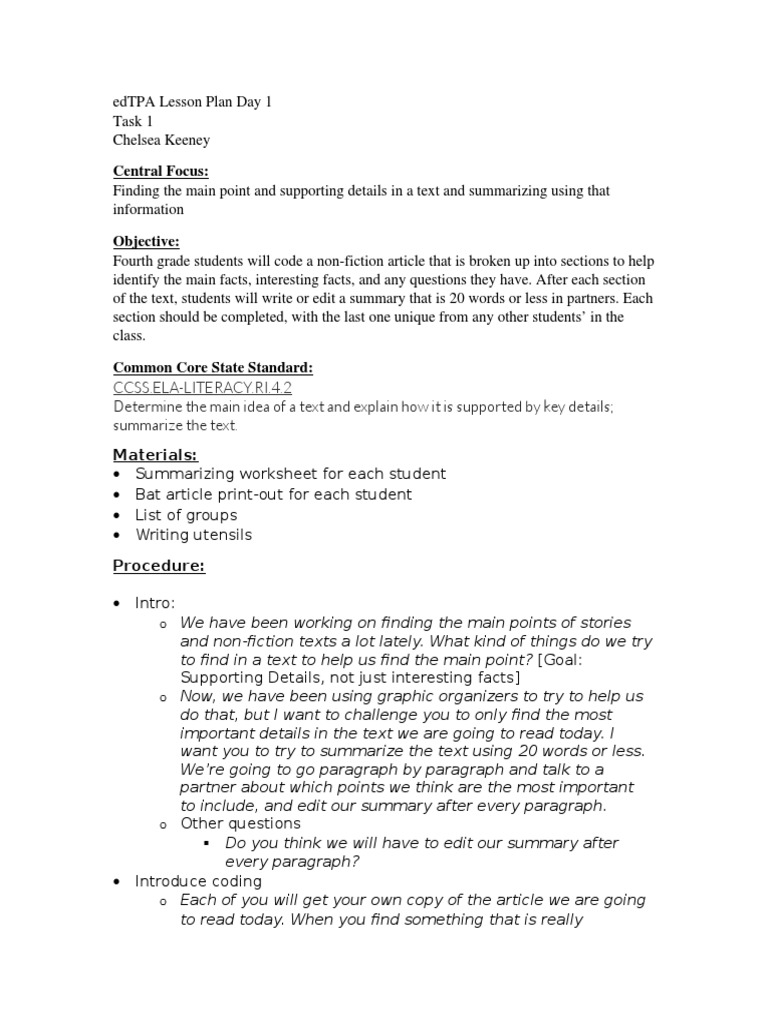 edTPATask 1 Day 1 Paragraph Lesson Plan