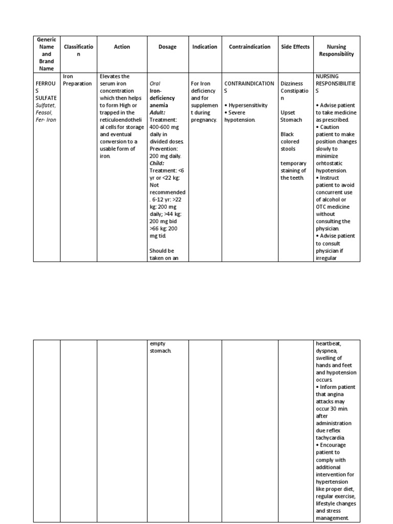 Ferrous Sulfate Medication Card ACTIVE LEARNING TEMPLATES