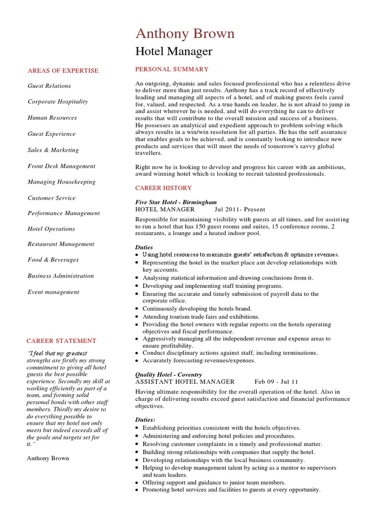 Hotel General Manager Resume Templates at
