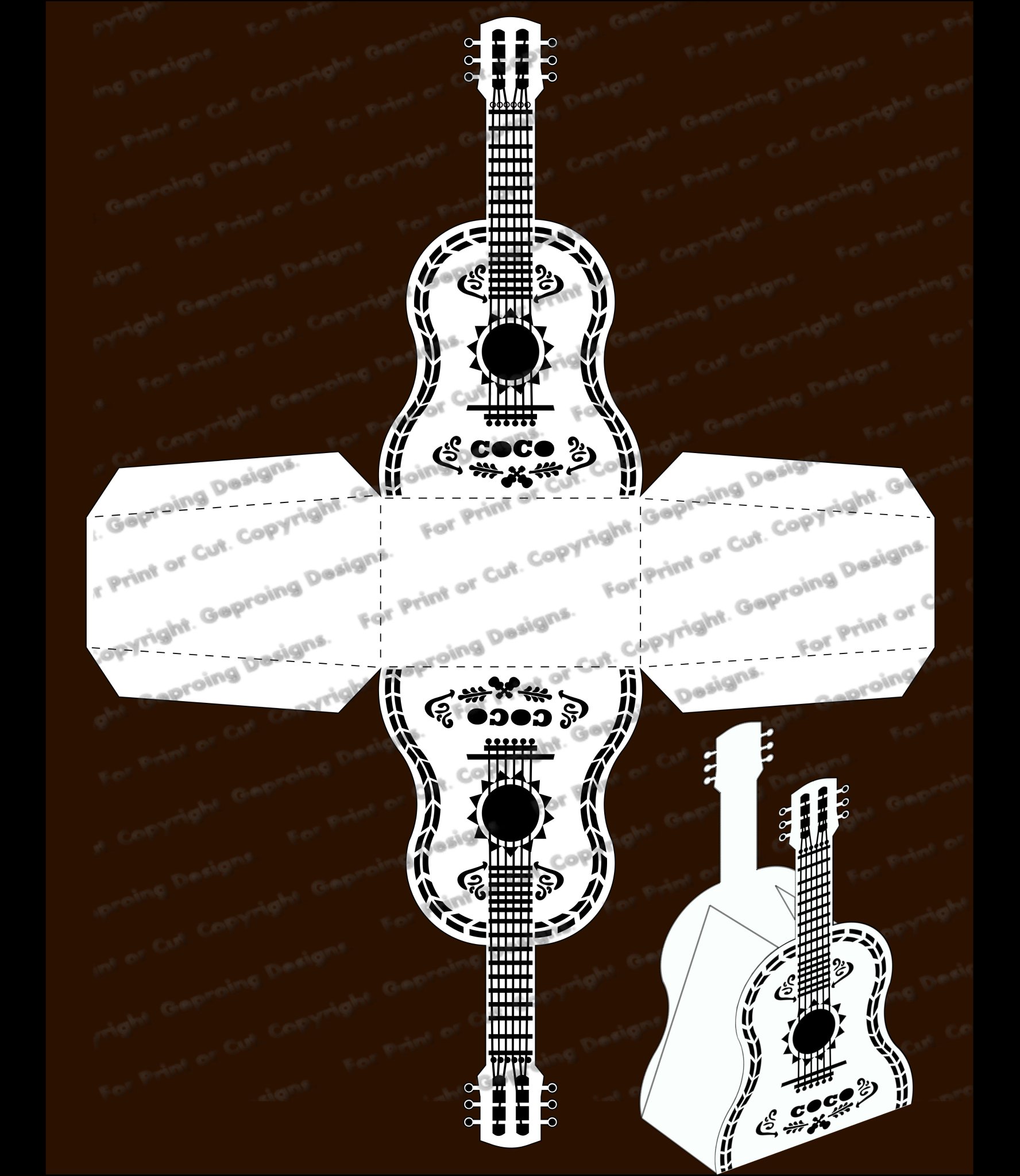 GeproingDesigns on Twitter "Template for gift box /Coco Disney guitar