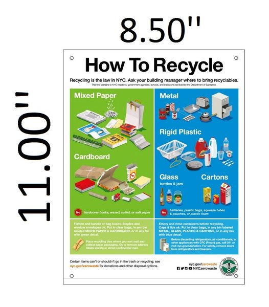 DSNY SIGN How To Recycle Sign (Aluminium) (11X8.5) HPD SIGNS THE