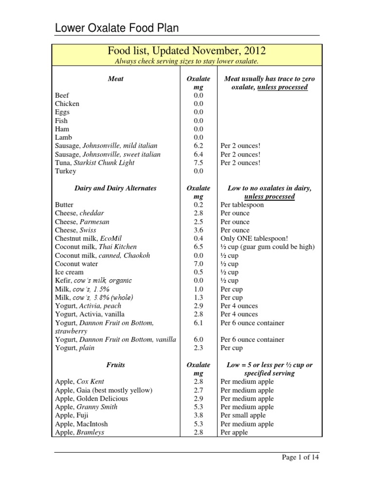 Printable Oxalate Food Chart - Web updated sep 17, 2022·32 comments i may receive a commission if you purchase through links in this post. This post provides a combined low oxalate and low salicylate food list, with a printable— for easy cooking and grocery shopping. Product portion oxalate soybeans / edamame 1 cup of whole pods 7 mg soy beverage 1 cup 336 mg soy burger 3.5 ounce patty 58 mg soy cheese 1 ounce 16 mg Web your budget is about 100 mg/day. Please consult your practitioner before changing your supplement or healthcare regimen. Web oxalate (oxalic acid) content of 750+ foods, with numbers from university and government sources. 3 one teaspoon of table salt has 2,325 milligrams (mg) of sodium. Web oxalate is an organic compound in many leafy greens, vegetables, fruits, beans, grains, nuts, and seeds. 1 serving with each meal 3x/day total fluid intake : You should eat no more than three of these foods per day. More than 100 mg of oxalates per serving high: Please consult your practitioner before changing your supplement or healthcare regimen. Find the low oxalate free printable pdf here. Eggplant m y y h vegetable garbanzo beans m y n neg legume, nut,. You should eat no more than three of these foods per day. It means if you want to use your whole budget on a treat, do it, but keep track and make sure you do not overspend in any meal or in any one day. It does not contain medical advice and there is no guarantee of accuracy. This website was created by a kidney stone patient to make oxalate content data. Web oxalate (oxalic acid) content of 750+ foods, with numbers from university and government sources. Web food group food item serving size oxalatecategory oxalate value fruits whole fruits avocados 1 fruit very high 19mg dates 1 date very high 24mg grapefruit 1/2 fruit very high 12mg kiwi 1 fruit very high 16mg orange 1 fruit very high 29mg raspberries 1. What does this graph mean? You should eat no more than three of these foods per day. Web updated sep 17, 2022·32 comments i may receive a commission if you purchase through links in this post. Web what to eat and avoid foods are typically grouped into four categories based on their content of oxalates ( 7 ): Have your. Beverages before we look at foods, here are some popular drinks that have oxalate data available. Plan your plate for kidney stones (calcium oxalate) lunch & dinner. This post provides a combined low oxalate and low salicylate food list, with a printable— for easy cooking and grocery shopping. Web low oxalate meal plan all information is intended for educational purposes. Find the low oxalate free printable pdf here. What does this graph mean? Please consult your practitioner before changing your supplement or healthcare regimen. Web oxalate is an organic compound in many leafy greens, vegetables, fruits, beans, grains, nuts, and seeds. It means if you want to use your whole budget on a treat, do it, but keep track and. Find the low oxalate free printable pdf here. Beets and beet greens, spinich, sweet potatoes, nuts, sesame seeds, garbonzo beans….what is really confusing me is all the conflicting information. Web oxalate (oxalic acid) content of 750+ foods, with numbers from university and government sources. Web food group food item serving size oxalatecategory oxalate value fruits whole fruits avocados 1 fruit. This post provides a combined low oxalate and low salicylate food list, with a printable— for easy cooking and grocery shopping. It is difficult to find reliable information on the amount of oxalate in soy products however the examples below show that soy is high in oxalate. Web is very low in oxalate beef, ground, 3oz, 0mg chicken, 3oz, 0mg. Web updated sep 17, 2022·32 comments i may receive a commission if you purchase through links in this post. All patients with calcium oxalate kidney stones, including those with primary hyperoxaluria are advised to avoid these foods. Web oxalate is an organic compound in many leafy greens, vegetables, fruits, beans, grains, nuts, and seeds. People with calcium oxalate kidney stones. Web oxalate is an organic compound in many leafy greens, vegetables, fruits, beans, grains, nuts, and seeds. Web 1 cup 1mg 100% bran 1/3 cup 25mg 100% natural granola oats & honey 1/2 cup 13mg 2% milk Web oxalates are naturally present in many foods, but in high amounts can contribute to kidney stones. Eggplant m y y h vegetable. Web oxalate (oxalic acid) content of 750+ foods, with numbers from university and government sources. Web is very low in oxalate beef, ground, 3oz, 0mg chicken, 3oz, 0mg crab & shrimp, 3oz, 0mg eggs, 1. Web plan your plate for kidney stones (calcium oxalate) vegetables: Web low oxalate food list. Web 1 cup 1mg 100% bran 1/3 cup 25mg 100% natural granola oats & honey 1/2 cup 13mg 2% milk People with calcium oxalate kidney stones uandu high urine oxalate levels (hyperoxaluria), uexceptu those with primary hyperoxaluria are advised to. Day 1 day 2 day 3 day 4 day 5 breakfast 1 cup oatmeal made with skim milk ¾ cup blueberries 2 tablespoons unsalted walnuts 1 cup coffee w/ 1 tbs cream & 1 tsp sugar 1 boiled egg 2 slices whole wheat toast You can eat as much of these foods as you like. It means if you want to use your whole budget on a treat, do it, but keep track and make sure you do not overspend in any meal or in any one day. Web rice, white (l) (avoid white rice products unless conscientious of thiamine deficiency. Web oxalate is an organic compound in many leafy greens, vegetables, fruits, beans, grains, nuts, and seeds. Web all of my favorite foods appear to be loaded with oxalates: Web oxalates are naturally present in many foods, but in high amounts can contribute to kidney stones. Web updated sep 17, 2022·32 comments i may receive a commission if you purchase through links in this post. Web low oxalate meal plan all information is intended for educational purposes only and should not be used as a replacement for medical advice. I am not a doct