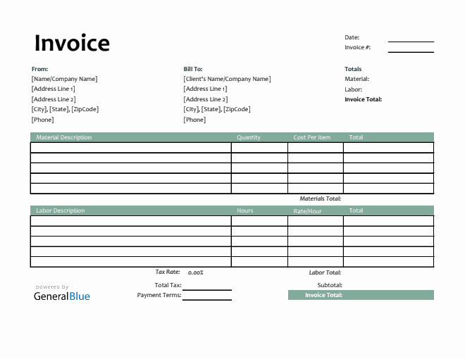 Free Time and Materials Invoice (Printable/Excel Template) Invoice