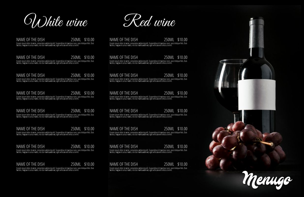 Menugo Wine Tasting List Menu Template
