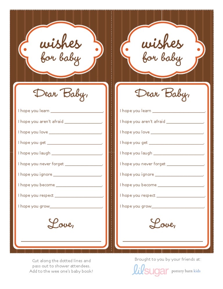 Wishes For Baby Printable - Web wishes for baby. With canva’s baby shower card templates, you have fewer things to worry about. “sending you loads of good wishes and endless love for your little prince. This will be something that mom, dad and baby will look back on in for the years to come. Collect the cards at the end of the baby shower to make a keepsake for the new parents and baby. I hope you enjoy this printable baby shower activity game for your next baby shower! When my younger sister was having her shower, there were a lot of relatives that weren’t going to be able to travel to it. That’s going to be one lucky baby!” 2. After everyone is gone, mom can read all the wishes from her dear friends and get a bit teary. Create a magnificent keepsake with our wishes for baby cards. After everyone is gone, mom can read all the wishes from her dear friends and get a bit teary. I recently helped cohost a baby shower for a dear friend who was expecting her second little bundle of joy. On this page you will find super cute free printable wishes for baby cards in 4 different designs. She can later. Web check out our wishes baby printable selection for the very best in unique or custom, handmade pieces from our party games shops. Web free printable baby shower advice cards: Have your guests fill out these wishes for baby cards. After everyone is gone, mom can read all the wishes from her dear friends and get a bit teary. Here. On this page you will find super cute free printable wishes for baby cards in 4 different designs. Wishes for baby template | wishes for baby printable | well wishes baby card | baby shower game minimalist | instant download |. But where do you write it? Web taking the time to put together a baby shower can seem impossible.. Congratulations on becoming a father.”. Web free printable baby shower advice cards: The littlest feet make the biggest footprints in our hearts. I can’t wait to meet your little munchkin! Web taking the time to put together a baby shower can seem impossible. Wishing you an easy delivery! Web check out our wishes for baby printable selection for the very best in unique or custom, handmade pieces from our party games shops. “sending you loads of good wishes and endless love for your little prince. I have made all these designs with great effort and hard work. Web download the wishes for baby. Available in four color options, simply download the color of your choice by clicking the links below. All of these unique dear baby game cards are instant downloads, so simply download and print as many times as you need. Here are free wishes for baby printables, available in the most popular themes, including woodland, twinkle twinkle little star, elephant, nautical,. That’s going to be one lucky baby!” 2. Web download the wishes for baby printable. Web writing meaningful messages to the new parents is an excellent baby shower activity. I hope you enjoy this printable baby shower activity game for your next baby shower! Web these wishes for baby free printables are the perfect way to capture all the love. “so happy for you three. But where do you write it? Then the wishes can be kept in a baby book or scrapbook. I can’t wait to meet your little munchkin! The littlest feet make the biggest footprints in our hearts. Web print download (.pdf) browse all baby shower printable these cute printable wishes for baby cards make for the beautiful keepsake for the new baby. “sending you loads of good wishes and endless love for your little prince. Web taking the time to put together a baby shower can seem impossible. Web these wishes for baby free printables are the. I hope you enjoy this printable baby shower activity game for your next baby shower! Web share these touching baby shower card wishes for the pink bundle of joy with mom on her big day. What to write in a card 1. Wishing you an easy delivery! But where do you write it? Have your guests fill out these wishes for baby cards. Web 51 new baby wishes + printables: “congratulations on your new arrival. Web writing meaningful messages to the new parents is an excellent baby shower activity. The littlest feet make the biggest footprints in our hearts. But where do you write it? All of these unique dear baby game cards are instant downloads, so simply download and print as many times as you need. “no wonder your baby boy is so cute as he got a handsome father and a beautiful mother. Web writing meaningful messages to the new parents is an excellent baby shower activity. Collect the cards at the end of the baby shower to make a keepsake for the new parents and baby. Here are free wishes for baby printables, available in the most popular themes, including woodland, twinkle twinkle little star, elephant, nautical, princess, boho, and more. She can later share all the love filled. “wishing you many congratulations on your new bundle of joy.” 4. Filling out a ‘wishes for baby’ card is a really sweet part of the festivities. Web (4.1k) $2.65 $3.54 (25% off) dear baby printable wishes for baby minimalist dear baby cards instant download baby wishes game baby shower modern minimal wishes pdf mm1 (1.3k) $3.75 blush pink floral sweet baby wishes sign, baby shower guest book sign, baby wishes sign, wishes for baby sign, birthday party sign (4k) $3.90 $7.80. This will be something that mom, dad and baby will look back on in for the years to come. I recently helped cohost a baby shower for a dear friend who was expecting her second little bundle of joy. Web wishes for baby. Web free printable baby shower advice cards: Finding out what to write in a baby shower card for a new baby girl is easy with these messages below, go one step further and print these sweet words onto a custom canvas print that mom and dad can hang in the little one’s nursery.Free Printable Baby Shower Cards Pink Watercolor Flowers Printable