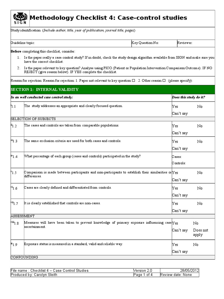 Checklist For Case Control Studies PDF Confounding Educational